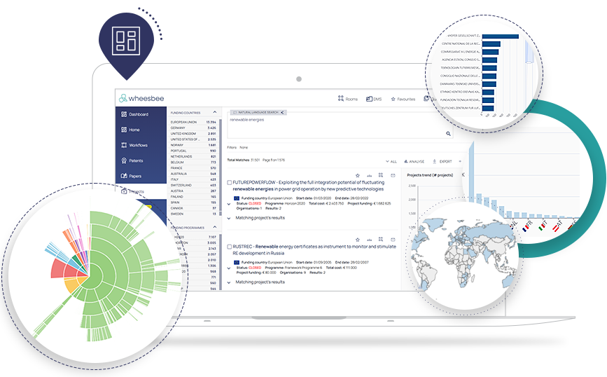In the R&D processes, one of the major issues always lies in securing appropriate funding. As a matter of fact, a wide range of public funding is available all over the world to support organizations of any type in their R&D processes. In this regard, WheesBee provides a unified database of funding opportunities for R&D projects granted by the European Commission and by a number of national governmental bodies in Europe and overseas. Funding opportunities are described with a fine granularity up to the level of topics, and thanks to Wheesbee’s semantic search you can easily find the grants that better fit your project and your organization.