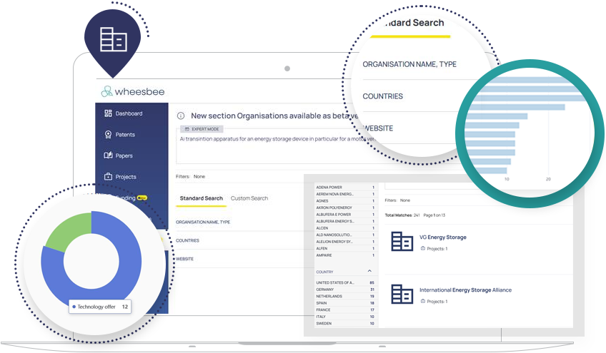 Discovering technologies and trends relevant to the market in which organizations are operating is essential for innovation. Whether you are scouting for specific technologies to address customer or engineering needs, or looking for inspiration for your next product or process, Wheesbee finds technological solutions by analyzing more than 200 million documents and different datasets. Top innovators within your sector are also identified, enabling you to choose which technology to focus on, and with whom it may be worth collaborating.